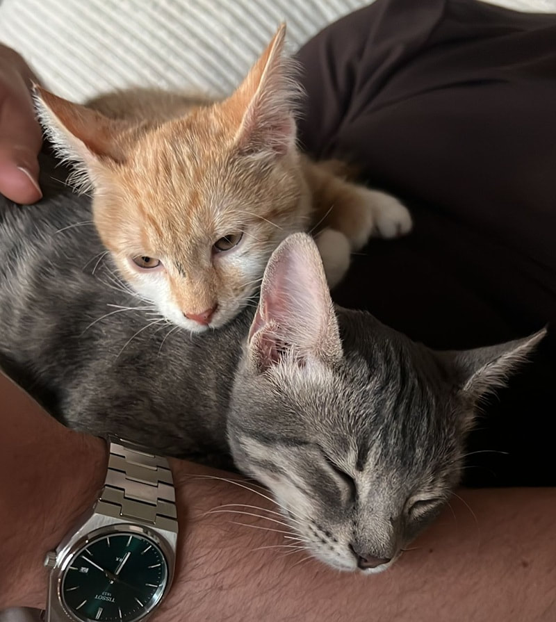 Am Freitag haben wir diese mega herzigen Bilder von Atlas (dem Grössten von den ausgesetzten Tierspital-Kitten) und seinem Freund Volki (er kam als munziges Baby zu uns, weil er in einer Baumaschine gefunden wurde). Volki und Atlas freundeten sich schnell an, weil beide im selben Alter waren und deshalb vermittelten wir sie zusammen. Sie haben sich schon so gut eingelebt im neuen Zuhause und sind nach wie vor unzertrennlich. Diese tollen Bilder wollten wir mit euch teilen, weil so viele von euch Geld und / oder KMR-Pulver gespendet sowie mitgefiebert haben, dass die Kleinen überleben.