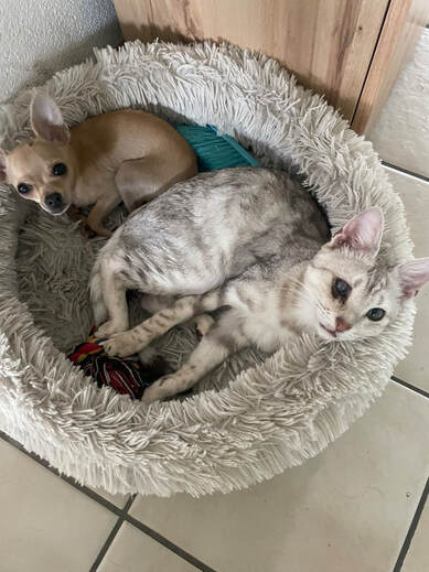 Tori mit ihrem Katzenfreund "Peanut"